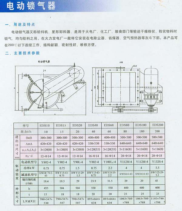 電動(dòng)鎖氣器又稱給料機(jī),星型卸料器,也用于火電廠,化工廠,糧食部門等輸送干燥粉狀,粒狀物時(shí)鎖氣,均勻給料之用。在火力發(fā)電廠一般將它安裝在電除塵器,省煤器,空氣預(yù)熱器等灰斗下部,本產(chǎn)品可在200℃以下連續(xù)工作,結(jié)構(gòu)新穎,密封性好,維修方便。