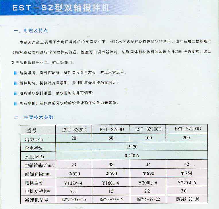 本系列產(chǎn)品主要用于火電廠等部門的灰?guī)旎叶废,作噴水濕式攪拌以及輸送粉狀物料用。該產(chǎn)品用二根螺旋葉片對粉狀物料進(jìn)行均勻攪拌及輸送,溫度可由調(diào)節(jié)器控制,達(dá)到固體顆粒物料的加濕攪拌和輸送要求。該系列產(chǎn)品也適用于化工,礦山等部門。